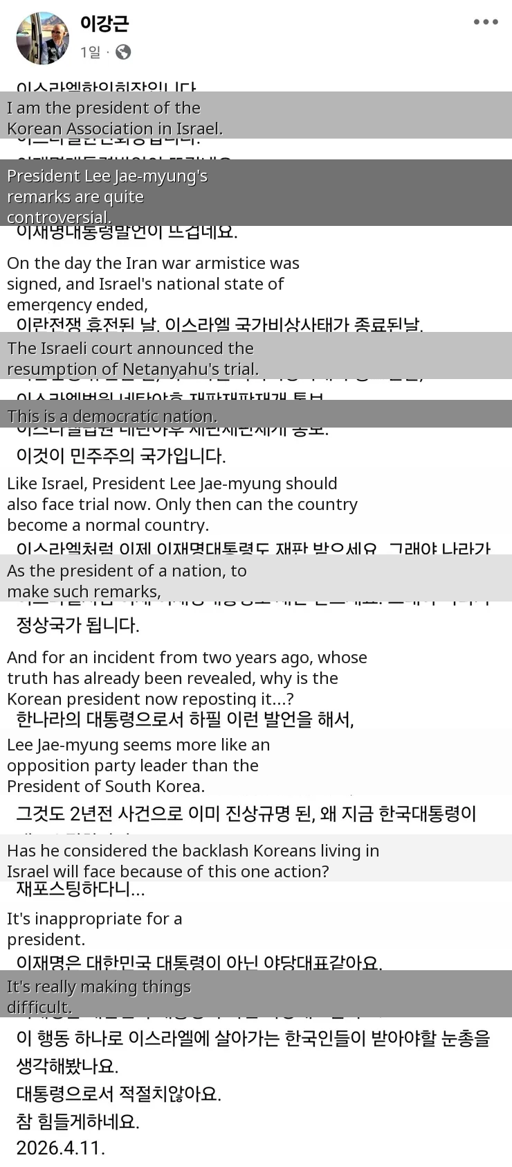 This post is going viral in Korea due to the ongoing Israel-Palestine conflict, which has heightened sensitivity towards any perceived allegiance to Israel. The revelation that the head of the Korean association in Israel, a pastor, has children serving in the IDF has ignited a fierce debate about national identity, religious leadership, and community representation.