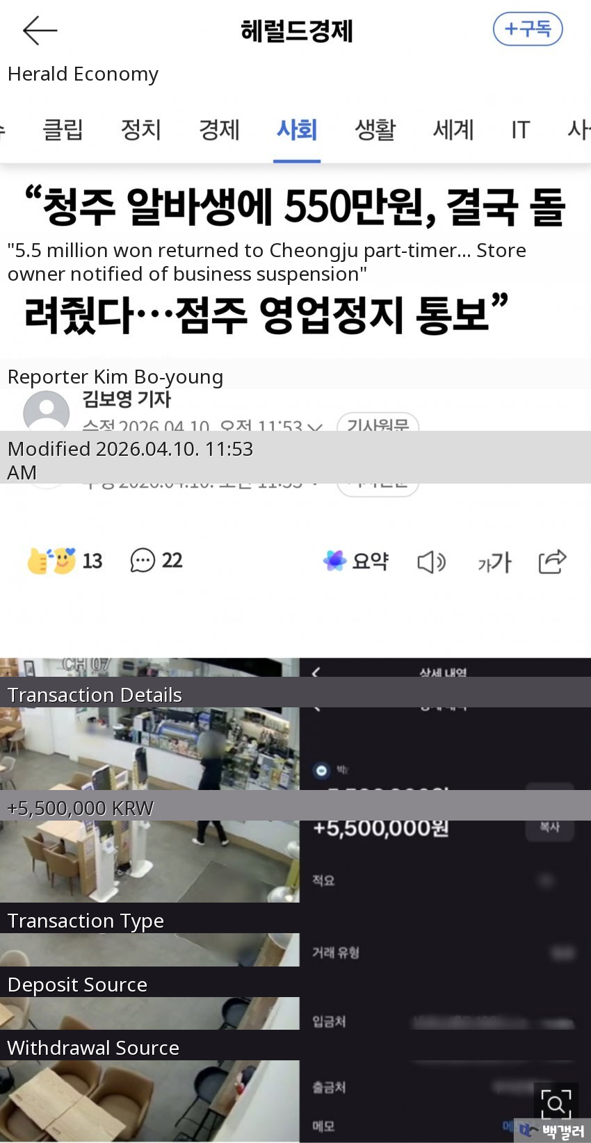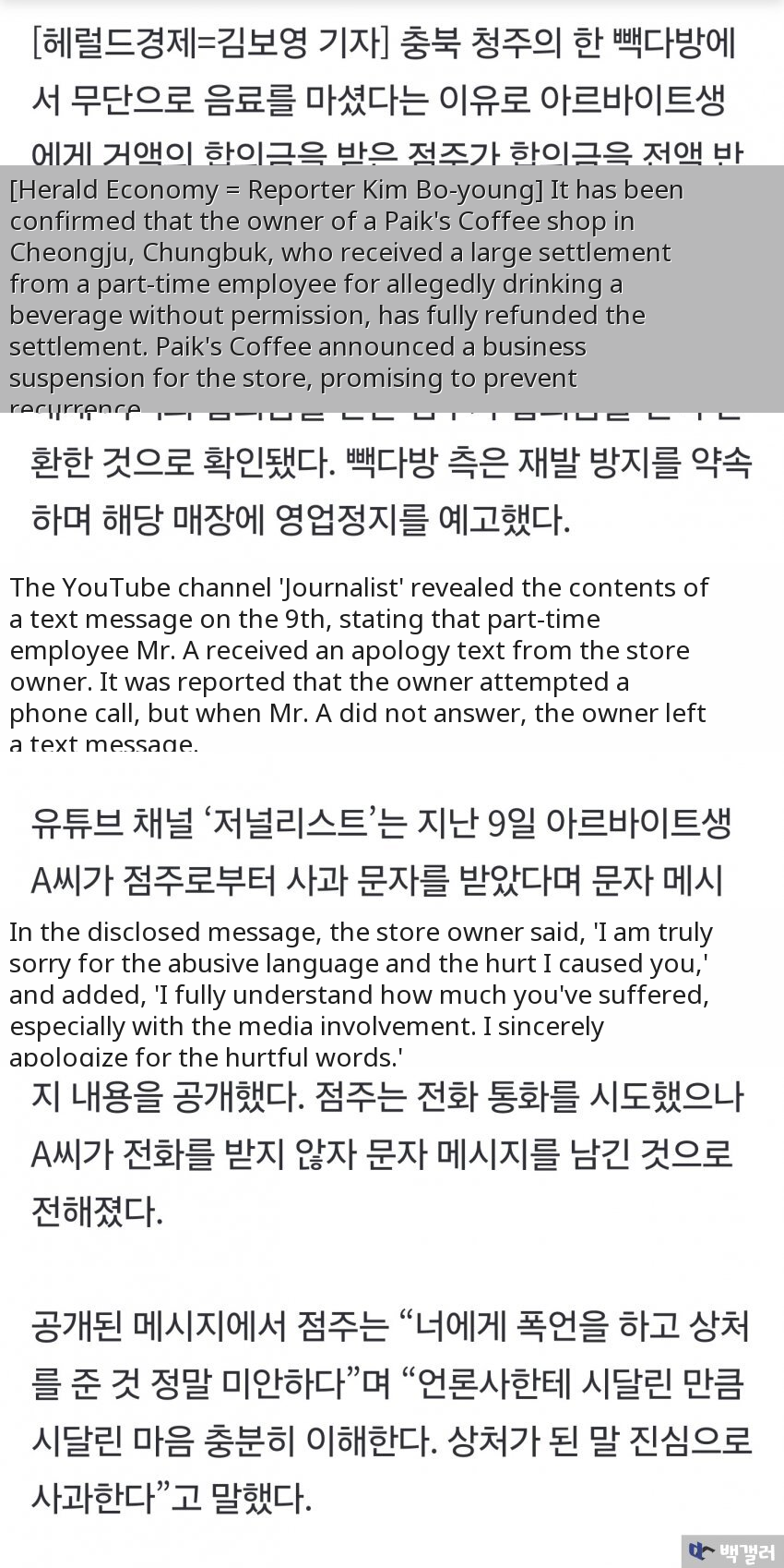 This story went viral due to the involvement of celebrity chef Baek Jong-won's popular Paik's Coffee franchise, combined with public outrage over the blatant exploitation of a part-time worker by a greedy store owner.