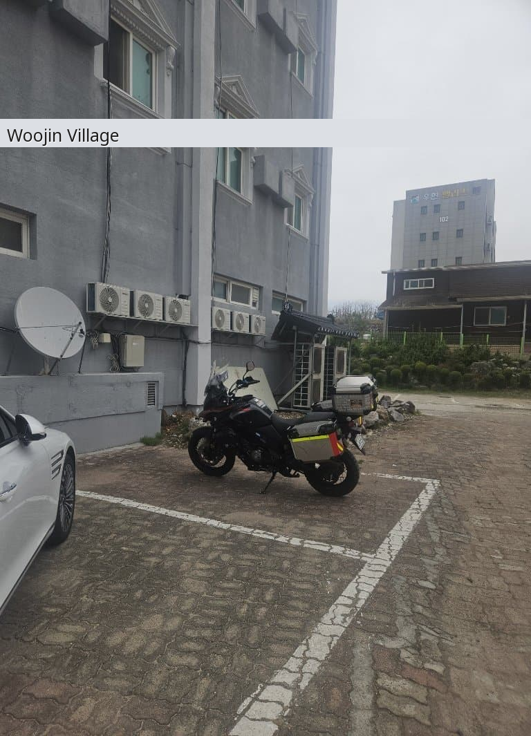 Booked a motel, lmaooo. Pro tip: off-season weekdays, you can totally negotiate the price, peace out โ๏ธ Saw a giant GS25 right across the street, thank god. Literally 30 mins before writing this, I lowkey snuck a chocolate bar, coffee, and a note into my sleeve (don't ask) and crashed on the bed. I'm so tired, bestie. Honestly, ordering a 2-person meal is more cost-effective, just saying. Today's ride: DONE. Tomorrow, Mungyeong. Wonder if I'll see the homie who likes Nojjang? ๐