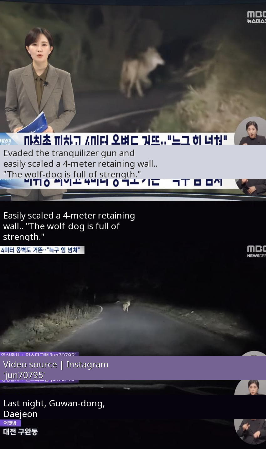In Korea, specific animals, especially those involved in local news or unusual circumstances, often capture public imagination and become internet memes. The name Neukgu itself is a portmanteau of 'wolf' (๋๋, neukdae) and 'dog' (๊ฐ, gae), reflecting its ambiguous identity and adding to its mystique.