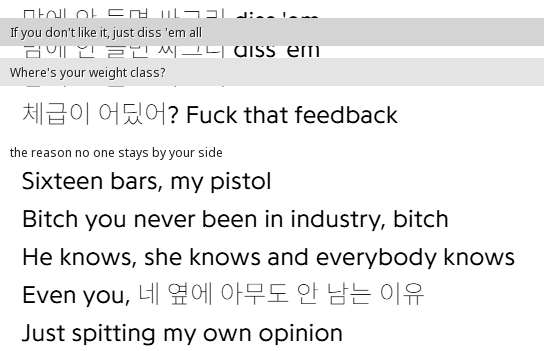 Following this, Big Naughty released a diss track, but public opinion largely sided with Swings. Swings, wanting to avoid a prolonged fight with a much younger artist, tried to reconcile through Kid Milli, but Big Naughty didn't respond. Eventually, they met by chance at a pocha street with Han Yo Han, talked things out, and seemingly reconciled, even exchanging texts. However, Swings claims Big Naughty continued to subtly diss him afterward.