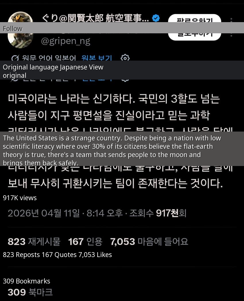 However, this widely circulated claim has left actual Americans utterly baffled. Many state they have never encountered a flat-earther in their lives and find the 30% statistic not only unbelievable but also insulting to their intelligence. While acknowledging that some might feign belief for attention or to provoke others online, Americans insist that such a high percentage of genuine flat-earthers is simply absurd. One 67-year-old Trump supporter even commented, "I've never seen a flat-earther in my life." The general sentiment among Americans reacting to these Korean online discussions is one of shock and bewilderment at the bizarre and often misinformed views being propagated.
