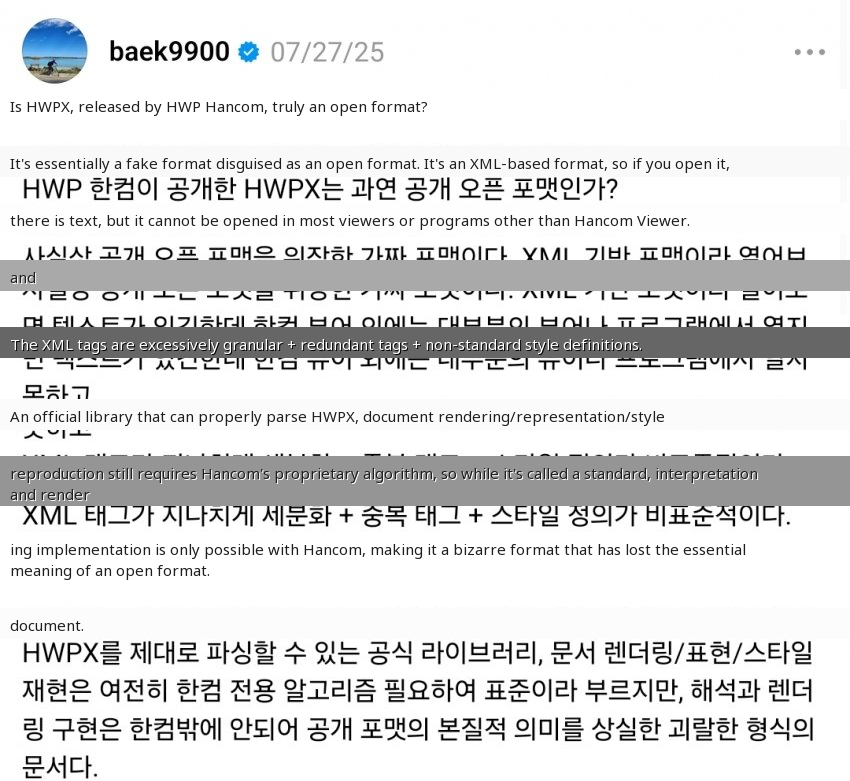 This post is trending because it taps into a long-standing frustration among Koreans about the dominance of Hancom Office HWP in government and public sectors, celebrating its potential downfall due to new tech.