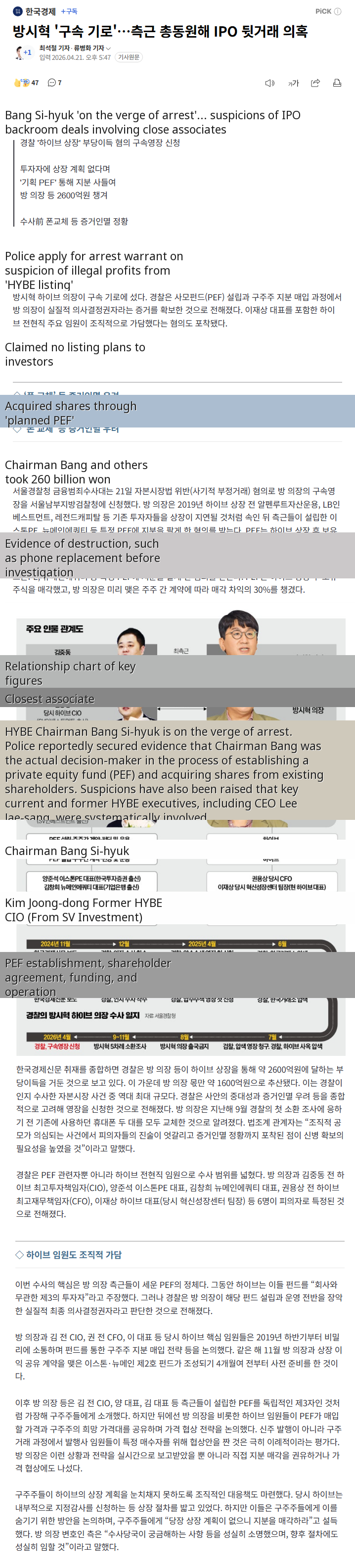 - 관련게시물 :경찰, 방시혁 하이브 의장 구속영장 신청출처: 케이팝(K-POP) 갤러리[원본 보기]
