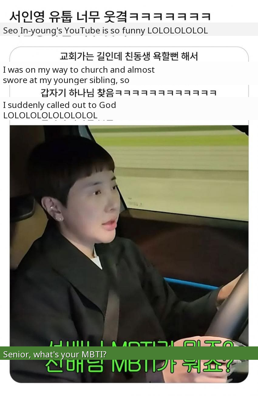 This clip is going viral because it's a hilarious and relatable moment from a well-known K-pop celebrity, Seo In-young, whose strong personality makes her chaotic reactions even funnier. Her sudden call to God after almost swearing is peak internet gold.