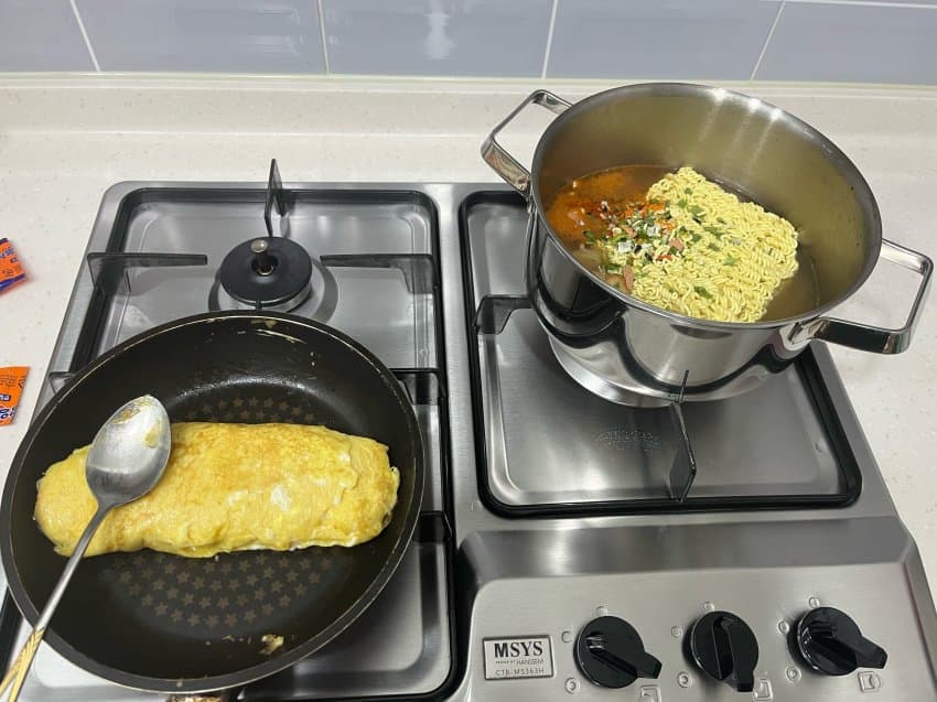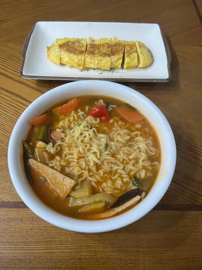 어제 점심해장오뎅라면 계란말이실시간 야식 김치찜소주를 안깔수가없음