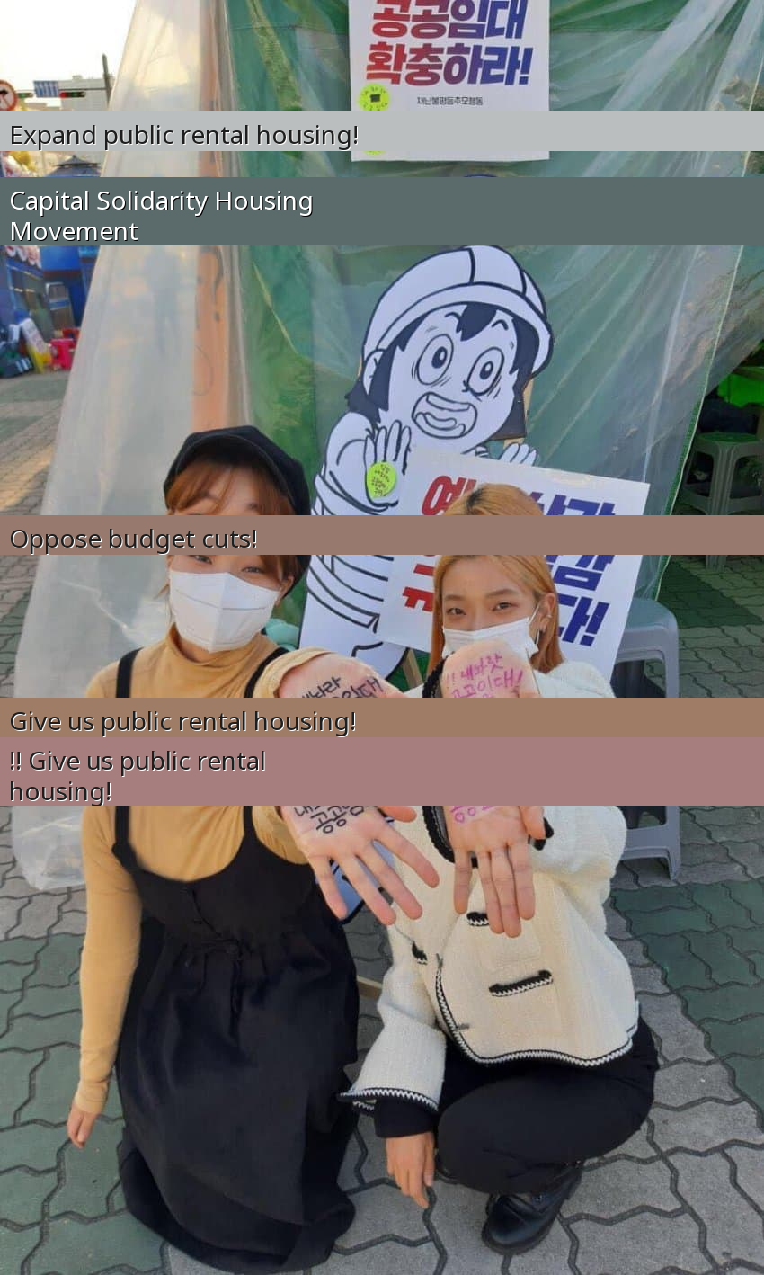 With all the jobs in Seoul and insane housing prices, demanding public housing is understandable. But when it turns into brainless 'give it to me' demands for prime Seoul subway station areas and over 10 pyeong for single households, it just sounds crazy.
