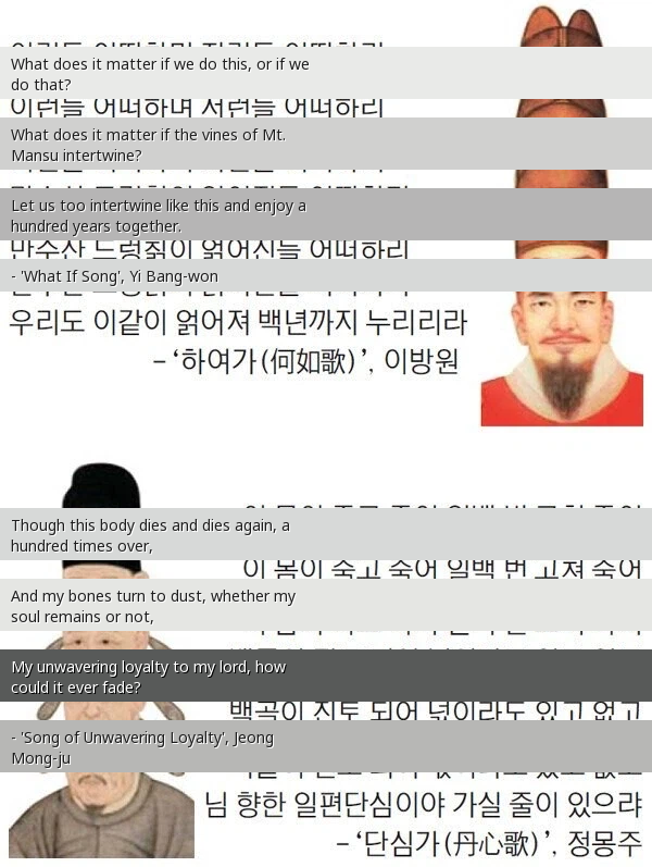 The fact is Jeong Mong-ju WON that diss battle, but P*ssy Bang-won used weapons to get a moral victory, it's a clear fact written even in the Goryeo Subakdo 😤