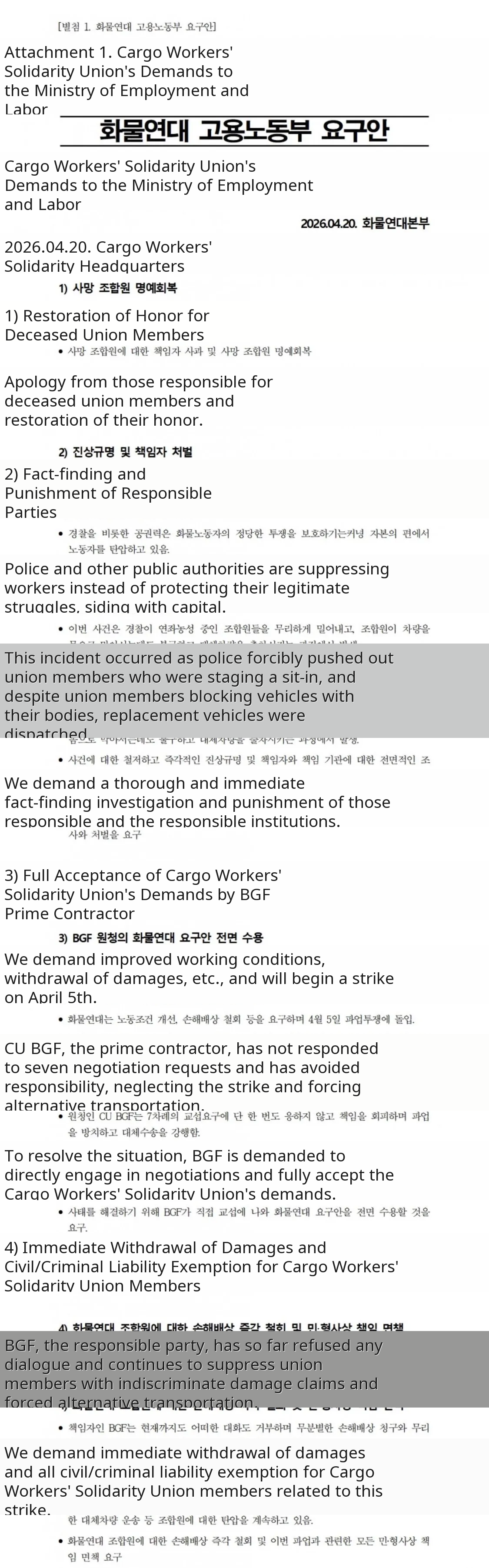 The Cargo Workers' Solidarity is a major labor union representing truck drivers and cargo workers in South Korea.