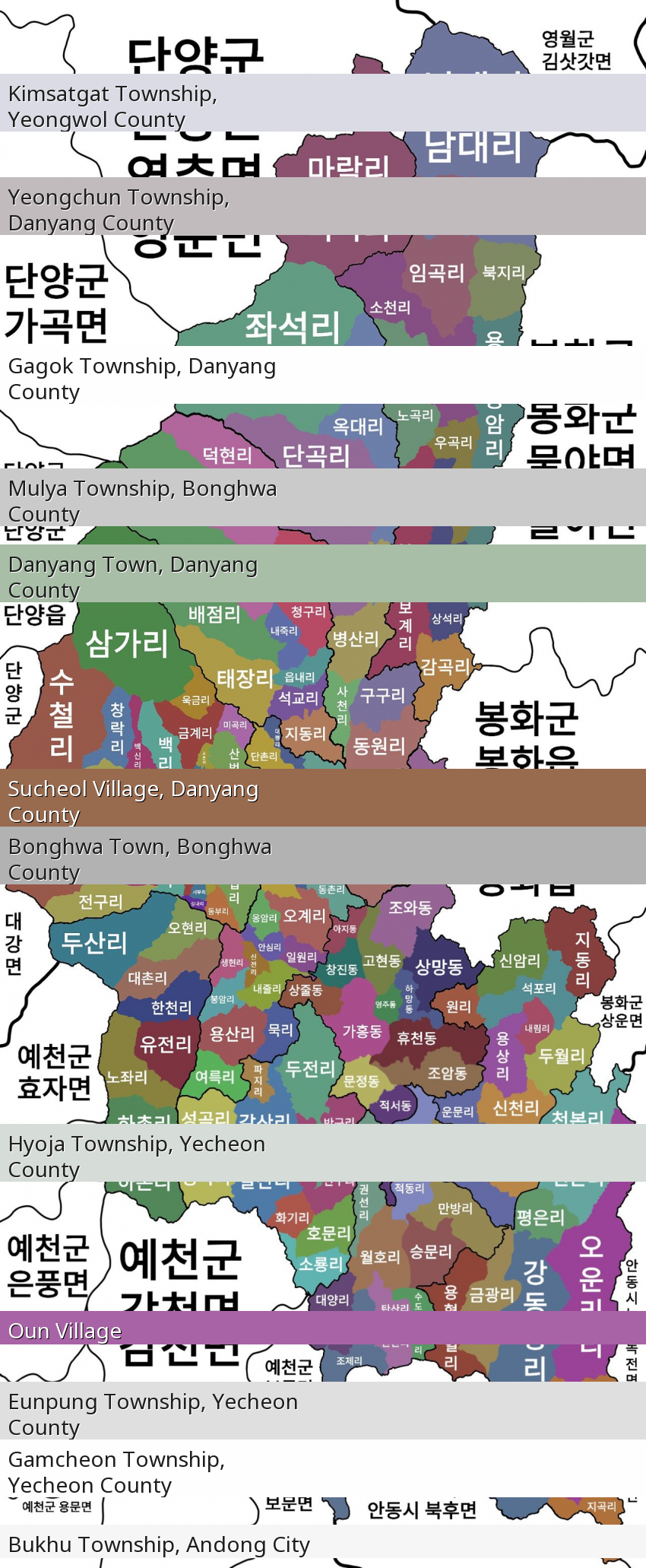 처음 보면 마을 이름이 몇 개냐 싶을 텐데,