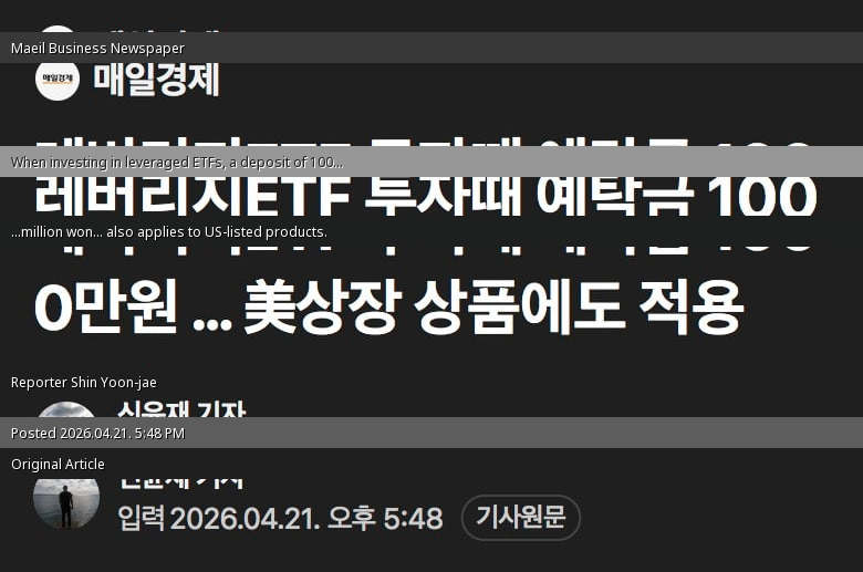 But it's ridiculous that you can easily buy 3x leveraged overseas stocks, but for the crappy KODEX leverage (domestic) that barely moved 1% a day before the bull market, you had to take education. I mean, it's weirder that KODEX leverage is harder to buy than overseas leverage. The 10 million KRW deposit is annoying, but considering the risk of leverage itself, I can somewhat understand it.