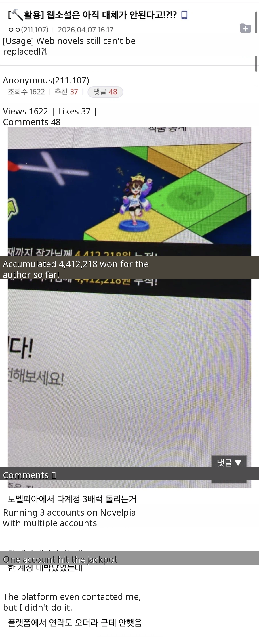 This post went viral due to the ongoing debate about AI's role in creative fields, especially within Korea's booming web novel industry. The swift debunking of the exaggerated claim resonated with many who are skeptical of fully automated AI content generation.