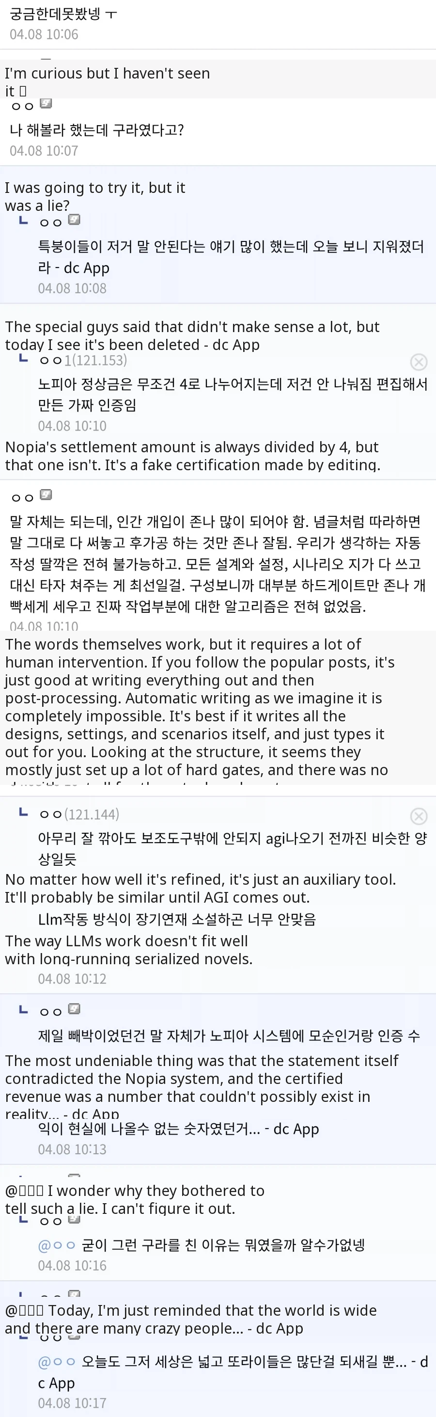If an era comes where you can 'ssalmeok' writing web novels with AI, that would be AGI (Artificial General Intelligence). There are tons of people who read 100,000 characters of web novels a day; their eyes are more accurate than those who filter AI art.
