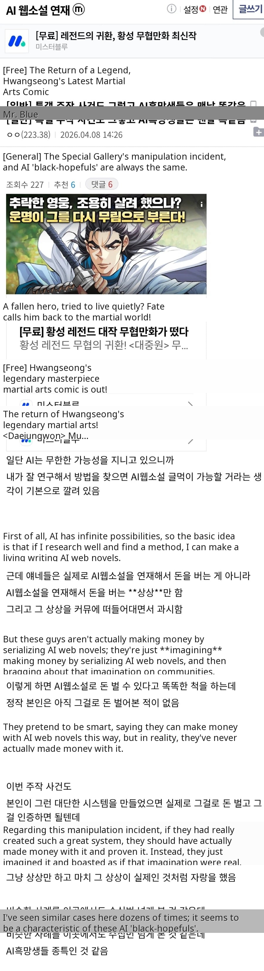 진짜 AI로 글쌀먹하겠다고 온갖 몸비틀기 하는 놈들이 보기엔 너무 식상해서 재미없는 어그로였다고 평가함.