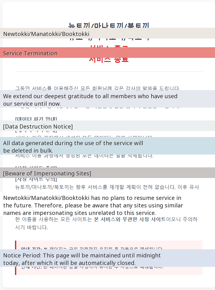 Marumaru (a previous major illegal site) closed, they said 'will never reopen.' A few months later, ManaTokki opened lollll.