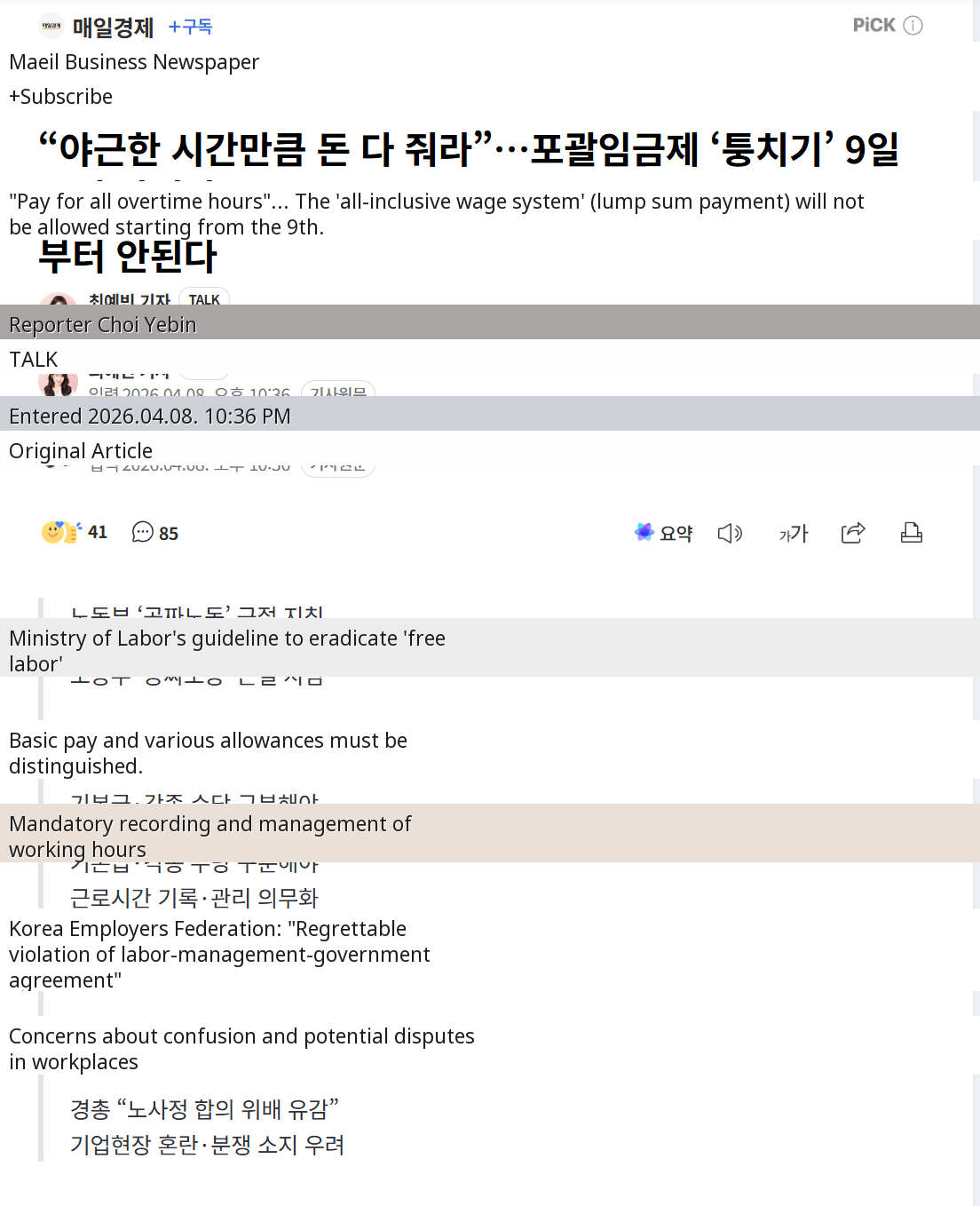 Big news for South Korean workers! The controversial "Comprehensive Wage System" (포괄임금제), often criticized for enabling "free labor" (공짜노동), is finally being restricted starting April 9th. This means companies can no longer simply lump overtime, holiday, and night-shift pay into a fixed monthly salary, regardless of actual hours worked. The Ministry of Labor is cracking down, mandating that basic pay and various allowances must be clearly separated, and employers are now required to accurately record and manage employee working hours.