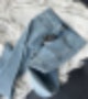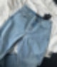 These 'naedonnaesan' (my money, my purchase) jeans come in a light indigo color, described as a soft, slightly vintage light blue rather than a bright, saturated tone. The fabric isn't thin or flimsy; it's sturdy and dense, designed to hold its shape without sagging at the knees, though it might be a bit thick for the peak summer heat. The reviewer, who is 171cm (5'7") and typically wears a 27-inch waist, initially tried a size 29 but found it too 'classic.' To achieve the truly baggy, low-rise aesthetic she wanted, she boldly sized up to a 30. She styles them with a belt, worn loosely around her hips to create that coveted slouchy, low-rise silhouette. Even with her 'baettunddun' (belly-chubby) figure, the fit is fantastic, though she notes that leaner body types might achieve an even more pronounced 'slouchy chic' look. The wide leg opening of the men's jeans also creates a cool, natural stack over sneakers, adding to the overall relaxed vibe.