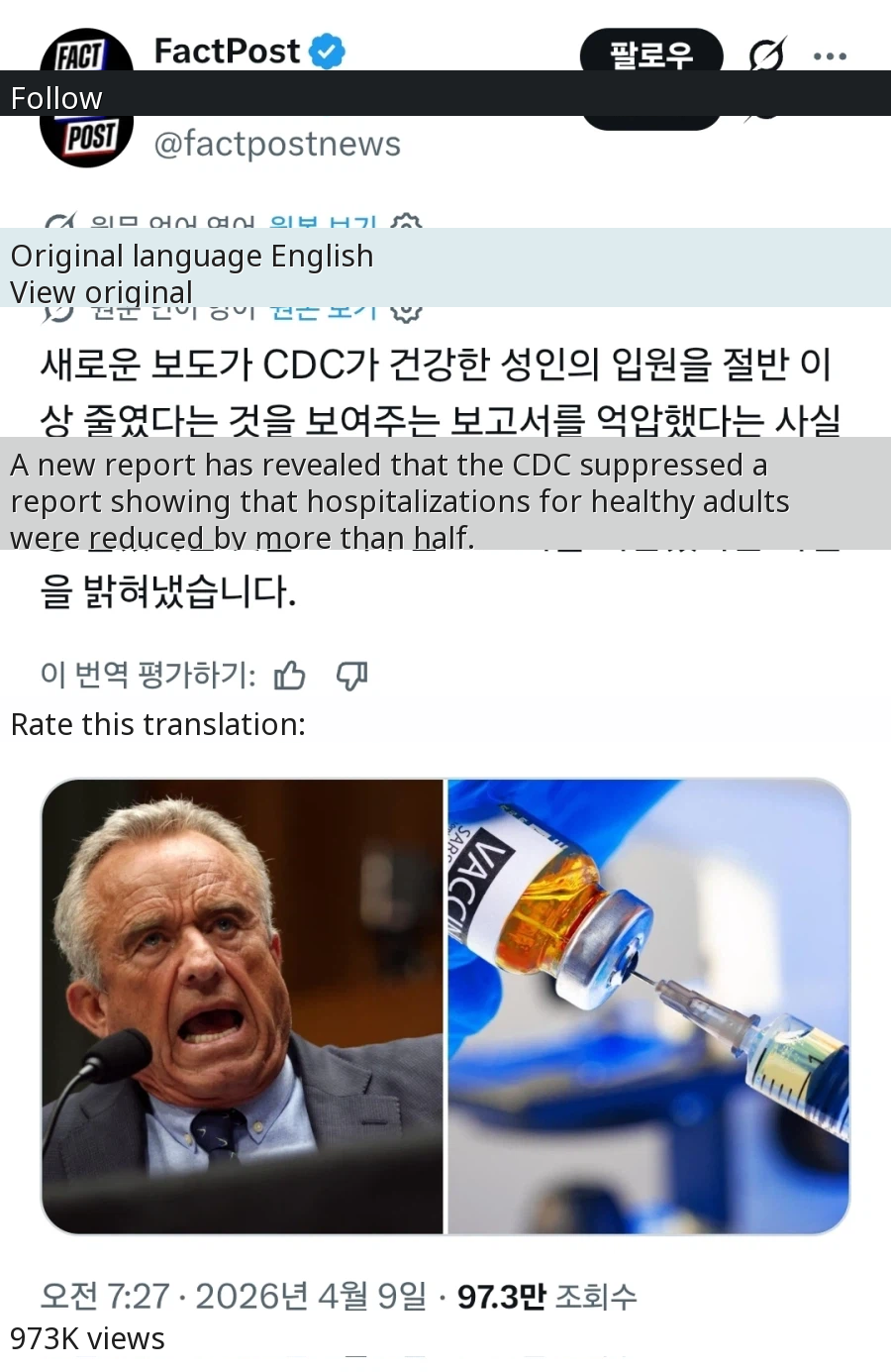 This post is trending because it highlights a global concern about anti-vaccine sentiment reaching high levels of government, which resonates with similar issues and frustrations experienced in Korea.
