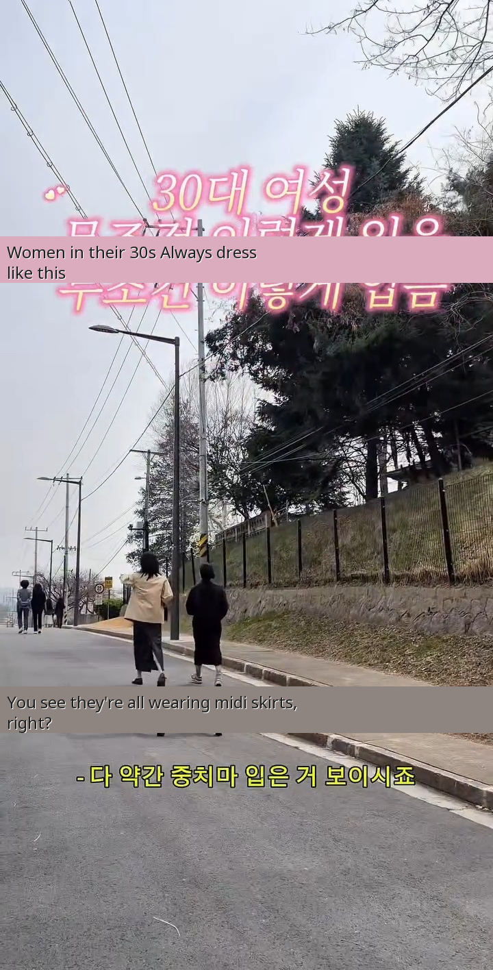 Bro, the internet is LOSING IT over this post about how women in their 30s dress in Korea. Someone posted this pic saying 'Korean women in their 30s ALWAYS dress like this' and I'm screaming. Apparently, it's all about the `jungchima` (midi skirt), a jacket, and some flats or loafers. Like, it's their literal uniform, no cap. And the comments are saying even their hair is similar, lmaooo. Is this fr fr the 30-something starter pack? The way I'm seeing it everywhere now ๐