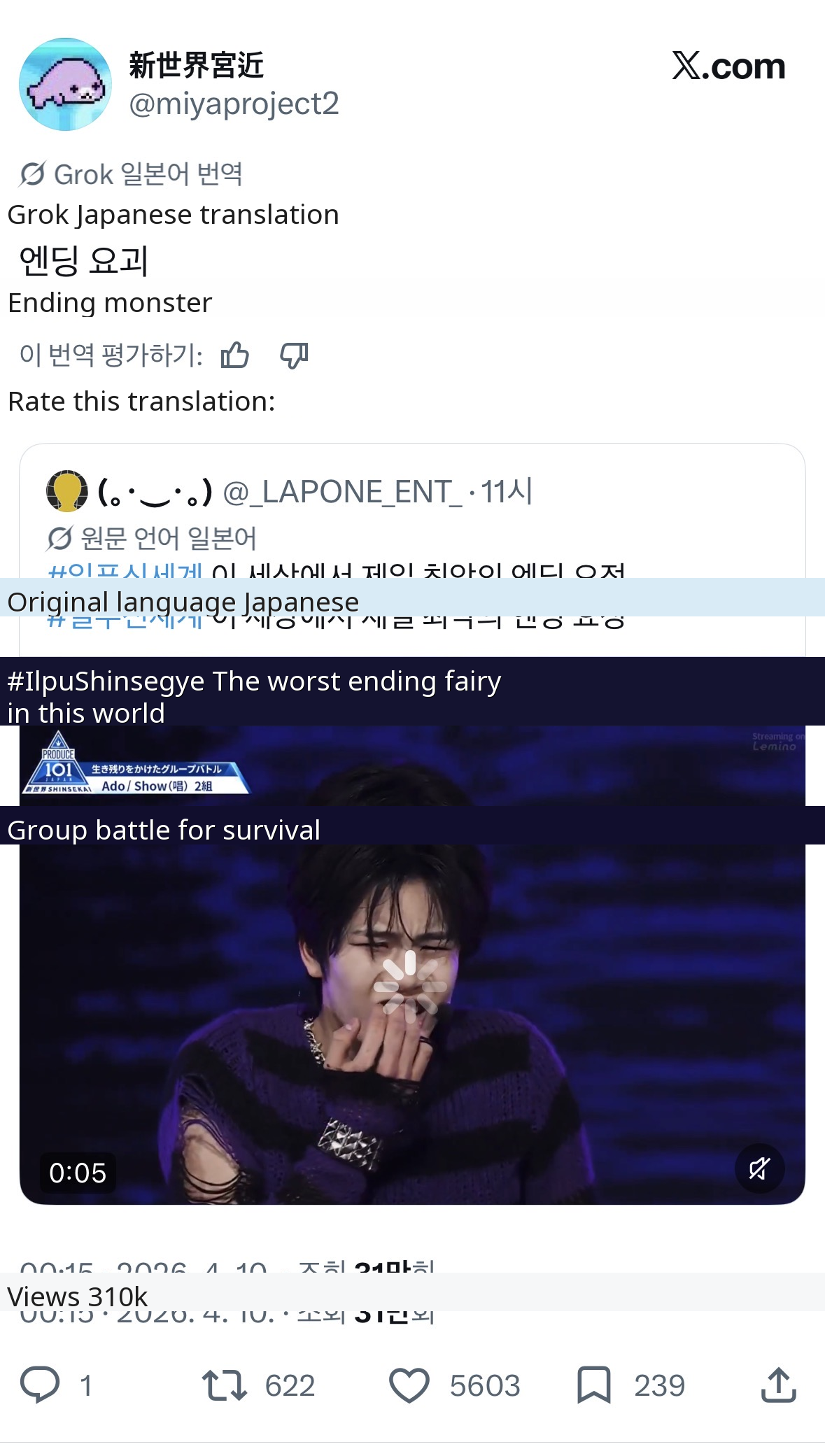 This particular ending fairy from Japan Produce is going viral because of its exceptionally captivating and memorable nature, sparking widespread discussion and admiration across Korean online communities. The contestant's unique charm and perfect execution of the final pose immediately captivated viewers, making it an instant hot topic and meme-worthy moment.