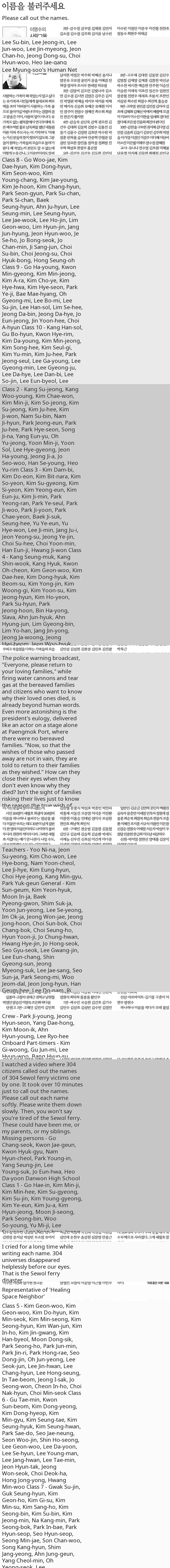 A deeply moving tribute to the victims of the 2014 Sewol Ferry disaster is once again resonating across Korean online communities. The song, titled "Please Call Their Names" (์ด๋ฆ์ ๋ถ๋ฌ์ฃผ์ธ์), is a poignant composition by Yoon Min-seok, known for his comforting and empowering music. What makes this song particularly heartbreaking and powerful is its unique structure: it dedicates over ten minutes to simply calling out the names of all 304 individuals who tragically lost their lives.